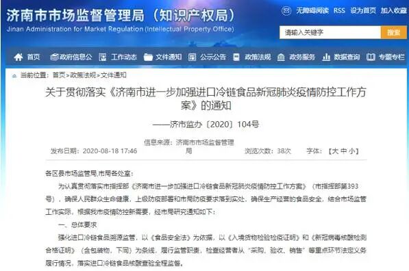 根据此次下发的通知,济南市将以进口冷链食品为主,重点检查进口冷链畜禽肉、水产品为原料的食品生产、流通、餐饮服务各类生产经营者。食品生产经营者应当按照“人物同防”要求,制定完善进口冷链食品新冠肺炎疫情防控方案、工作制度,对进口冷链食品索证索票、进货查验、储存和销售等关键环节和岗位采取措施,防范新冠病毒污染和传播风险。同时,食品生产经营者要严格进口冷链食品的索证索票、进货查验,严禁采购、销售、使用来源不明及《入境货物检验检疫证明》和《新冠病毒核酸检测合格证明》的不齐全进口冷链食品和原料。自2020年8月17日始,凡采购进口冷链食品的,必须按照疫情防控要求索取同批次海关《入境货物检验检疫证明》《新冠病毒核酸检测合格证明》和入库、出库《新冠病毒核酸检测合格证明》;从外地购进济南市的必须于货物到济前24小时,凭海关部门《入境货物检验检疫证明》和《新冠病毒核酸检测合格证明》向经营所在地区县市场监管局办理报备。6月18日海关总署官方网站发布公告称:11日-17日,全国海关对进口肉类、水产品、蔬菜、水果、水生动物、短时或低温运输工业品等货物及其包装和操作环境取样实施新冠肺炎病毒监测,共检测样品32174个,其中货物样品8274个,内外包装样品20833个,环境样品3067个,结果均为阴性。而在6月18日商务部例行新闻发布会上新闻发言人高峰回应国内暂停进口海鲜的民意时称,将“从源头上管控好进口食品农产品质量安全,保障中国消费者的健康安全”。针对深圳冻鸡翅检测出新冠病毒事件,8月13日,世界卫生组织(WHO)卫生紧急项目技术主管玛丽亚·范·科霍夫指出,中国卫生部门是通过对数千种冷冻食品的抽检,才从“极少数”样本上检测出了新冠病毒。没有证据显示新冠病毒可以通过食物进行传播,也没有发生人因食用某种食品从而感染新冠病毒的案例,因此不必过度恐慌。即便病毒能够存在于食物中,也可通过烹饪的方式杀灭。外包装上频繁检出新冠病毒,这引发了人们对病毒可能通过食品传播并导致新疫情暴发的担忧。冷冻生鲜产品,特别是进口的冷冻生鲜产品还能吃吗?据海关总署进出口食品安全局局长毕克新介绍,为防范新冠肺炎疫情通过进口冷链食品传入的风险,全国海关对进口冷链食品开展了新冠病毒风险监测。毕克新还表示,海关总署对进口冷链食品实行源头管控。首先要求向我国出口冷链食品的全部105个国家或地区的政府部门,督促输华食品生产企业完善食品安全生产管理体系,做好预防措施,保证输华食品安全。其次重点检查境外食品安全管理体系运行情况和监管责任落实情况,境外企业食品安全主体责任的落实情况,以及境外官方和企业对联合国粮农组织、世界卫生组织发布的新冠肺炎和食品安全有关指南的执行情况等。第三,针对近期一些国家肉类水产品企业发生聚集性感染疫情,采取暂停其产品进口等措施。